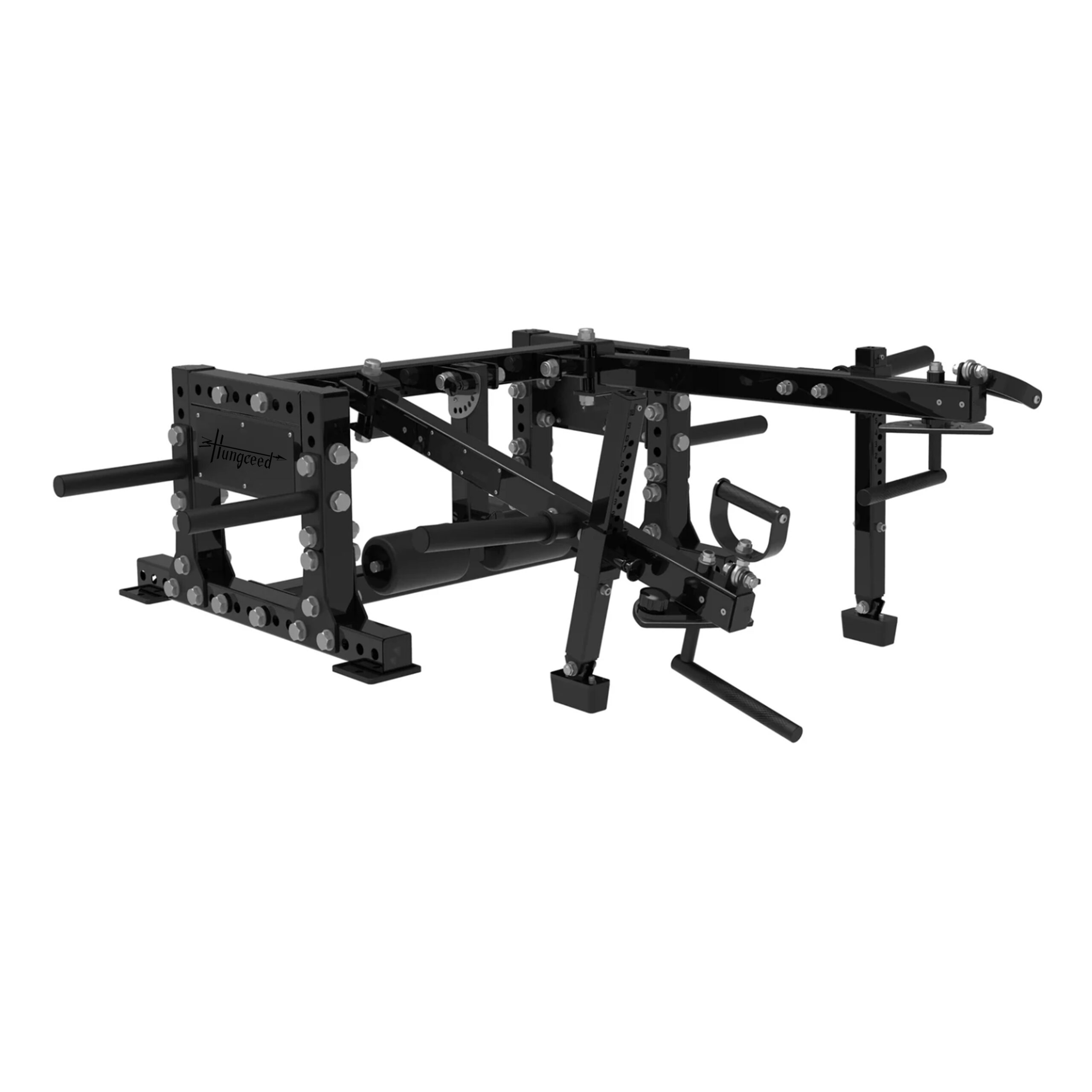 Equipada con brazos libres con asas giratorias moleteadas tipo D y asas fijas de 32 mm ajustables en altura, esta máquina permite ejecutar desde empujes clásicos hasta movimientos funcionales más complejos, como press, empujes verticales, jalones o ejercicios unilaterales.