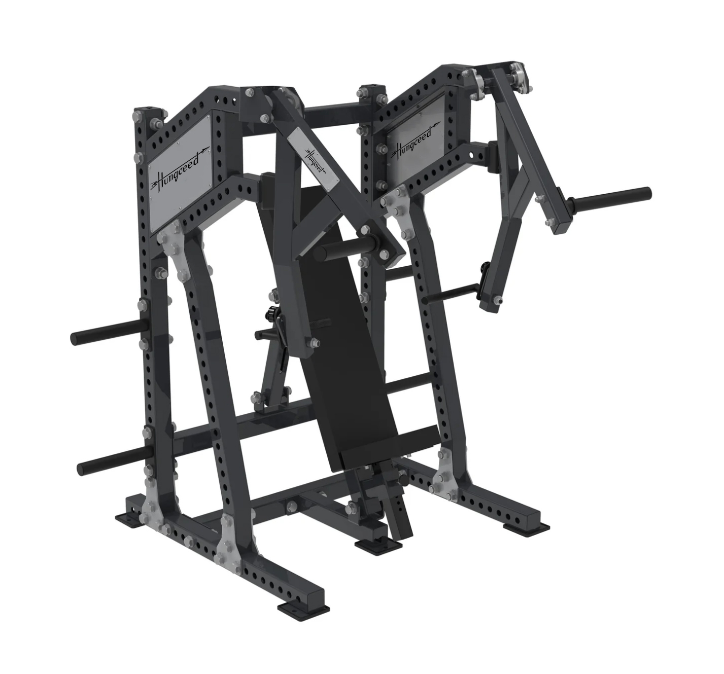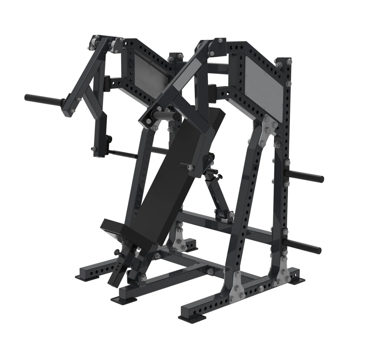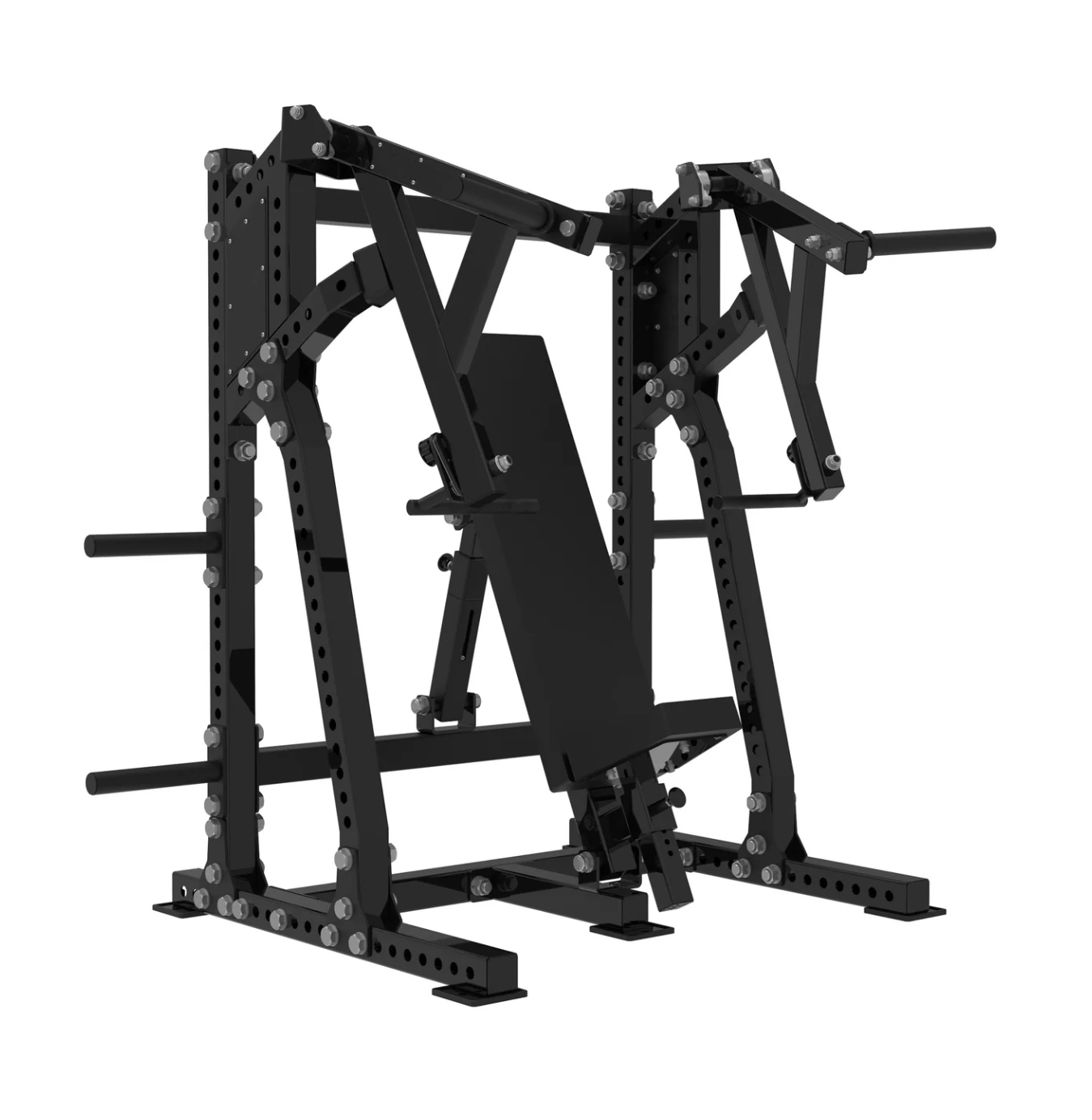 Potencia tus entrenamientos de pecho y parte superior del cuerpo con nuestra máquina de press de banca declinada, pensada para ofrecerte comodidad, seguridad y máxima eficiencia. Con agarres y topes de seguridad totalmente ajustables, esta máquina se adapta a cada usuario, permitiendo una postura óptima y un movimiento natural en cada repetición.